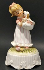Vintage Music Box Girl w/Dog Figurine Works