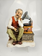 Vintage Music Box Figurine Man Listening Gramophone Rustic Decor