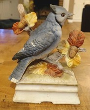 Vintage 1970s Towle Fine Porcelain Hand Painted Blue Bird Music Box 6" Tall 5" W