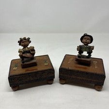 Vintage Hand Carved Wooden Man woman Innsbruck Austria Music box Pair