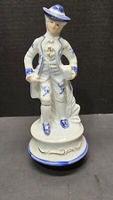 Vintage blue and white Victorian man porcelain figurine music box with gold trim