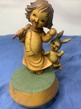 Vintage Anri Music Box Made in Italy "Rain Drop Falling" Child and Rabbit Swiss