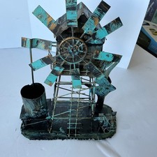 Vintage Windmill Metal Music Box Verdigris Patina Brutalist Decor 10in