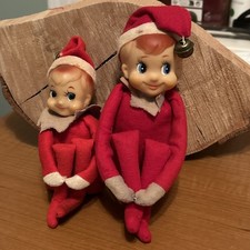 Vintage Pair Of Christmas Elves Knee Huggers Mid-Century Modern w/Rubber Faces