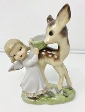 Vtg Mid Century Napco Girl and Cow Angels Figurine JapanRare