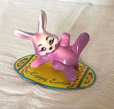 Pair Of Vintage Holt Howard Mid Century Easter Bunnies W/Bouquets Candle Huggers