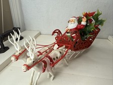 Christmas Santa Sleigh 6 Reindeer Hong Kong Plastic Cake Topper Mid Century RARE