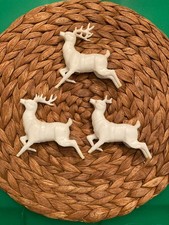 Vintage Set Of 3 White Hard Plastic Reindeer Celluloid Mid Century Modern MCM