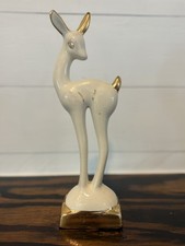 MCM Vintage MID CENTURY Porcelain 11" CHRISTMAS DEER Cream & Gold Accents