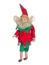 Vintage Christmas Pixie Elf 9” Ceramic Face Posable Bells Mid Century Modern