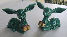 Lefton Green Deer Big Ears Set Of 2- Vintage Mid Century