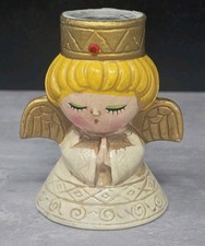 Mid Century Vintage Christmas Angel Lite Plaster Ceramic Gold Candle Holder
