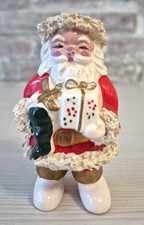 Vintage Napco Spaghetti Trim Santa Figurine Japan Mid Century Christmas Decor