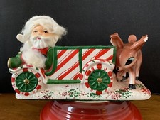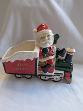 Vintage Mid-century Ceramic Santa On Xmas Express Christmas Train Planter Japan