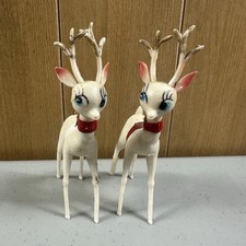 2 Vintage Hard White Plastic Christmas REINDEER Mid Century Mod 1950s Long Legs