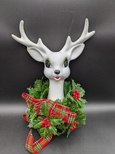 RARE Mid Century Modern Vtg White Deer Ceramic Big Eyes Christmas Wreath Lovely!