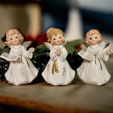 Set of Three Vintage Mid Century Homco Ceramic Christmas Angels Made in Japan