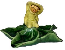 PIXIE ELF Green Ceramic Divided Dish Leaf Trinket Tray Vintage MCM Mid Century