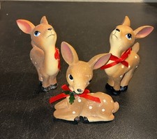 Vintage Mid Century Ceramic BIG EYE Deer Fawn Bambi Christmas