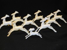 LOT of 9 Vintage Mid Century Rosbro White Hard Plastic REINDEER Figures 4.75"
