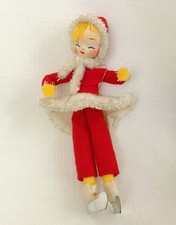 Vintage Mid Century Christmas Pixie Ice Skater Ornament