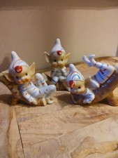 Vintage Mid Century Ceramic Christmas Pixie Elf Elves Violin Cymbals Japan