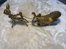 Vintage Mid Century GOLD GLITTER Pastic Atomic Christmas Reindeer Sleigh