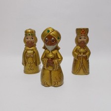Mid Century Gold Hand Painted Wise Men Set Star Plasterware Holiday Decor Japan