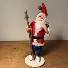 Antique German Folk Art Spun Cotton Wool Santa Claus Ornament Doll Figurine 5”