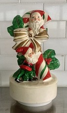 Vintage Santa Claus Music Box Global Art Taiwan Ceramic Here Comes Santa Clause