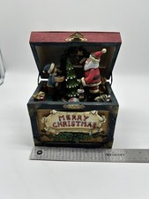RARE Vintage Christmas Animated Music Box Wind Up Santa's Sleigh- Silent Night