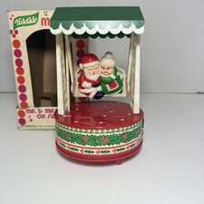 Vintage 1979 Christmas Music Box Swinging Mr & Mrs Santa Yuletide Hong Kong