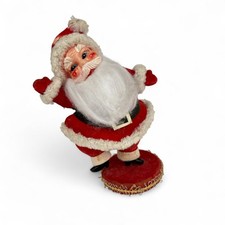 Vintage Christmas Flocked Santa Claus Topper - Music Box Part - 9"