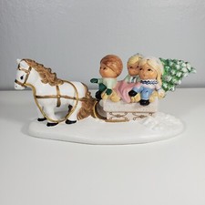 Vintage Music Box Christmas Around The World Sleigh w Porcelain Children W Box