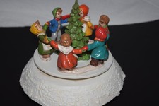 Vintage Ceramic Caroling Children Music Box -Silent Night - 7" tall - Christmas