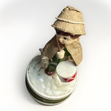 Vintage Musical Snowman Winter Christmas Porcelain Wind Up Figurine Music Box