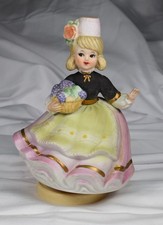Vintage Rare Musical SANKYO Japan Porcelain Rotating Girl with Flowers