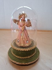 Vintage Angel Figure Playing Harp Under Glass Dome Cloche Music Box Rare