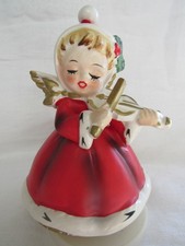 Vintage Napcoware 7259 Music Box Angel Playing Violin Plays Silent Night EUC