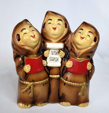 Vintage Ceramic 3 Singing Monks Music Box Brown Robes Oh Come All Ye Faithful 7"