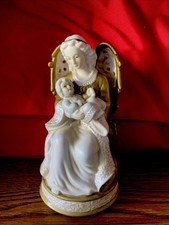 Vintage Angel With Child Music Box ,Rare-In Bisque Porcelain 8.5” Silent Night.