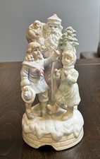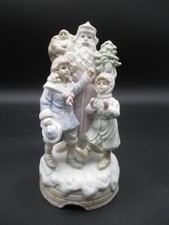 Rare Vintage Porcelain Santa Claus & Children Figurine Music Box Antique 8" Tall