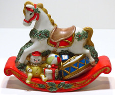 Vintage Christmas Rocking Horse &Toys Music Box Ceramic Figurine Plays "Toyland"
