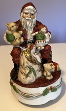 Vintage Santa Music Box Figurine Children Porcelain Wind Up Christmas Decor