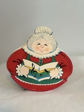 MUSICAL ROCKING MRS CLAUS Music Box Round Silent Night 1950's Box RARE! VINTAGE