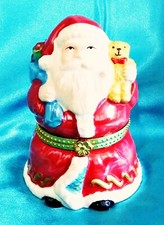 Beautiful! Vintage Santa Claus Glazed Ceramic Trinket & Wind Up Music Box