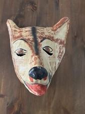 Antique Hand Made Painted Papier Mache Scary Creepy Cat Mask