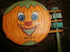 Antique Vintage Halloween wood ratchet pumpkin noise maker Germany