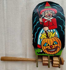 ANTIQUE 1920-30s HALLOWEEN WITCH WOODEN RATCHET NOISE MAKER Germany