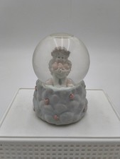 Vintage Windup Music Box Baby Angel Snowglobe with wooden base.